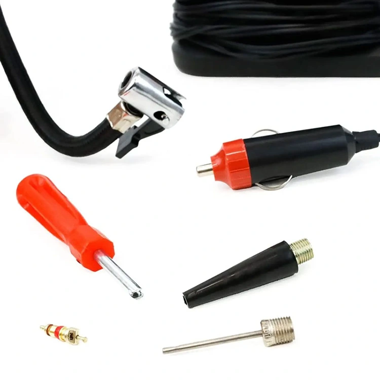 3.Attach compressor, power via 12 V socket, inflate to recommended pressure while reading the metal gauge.