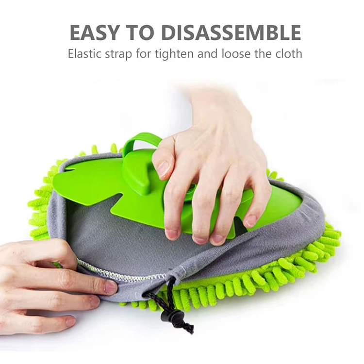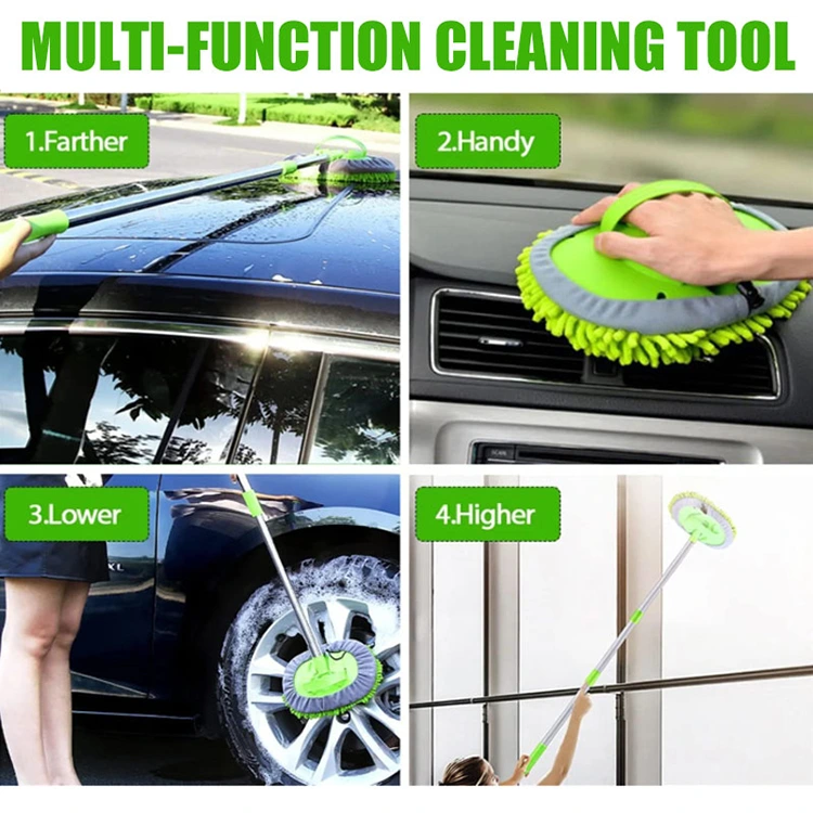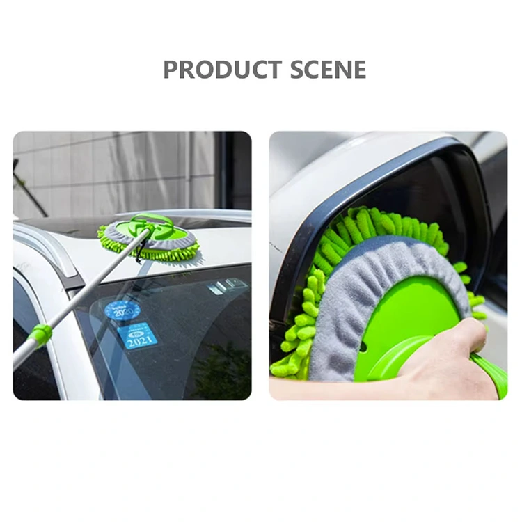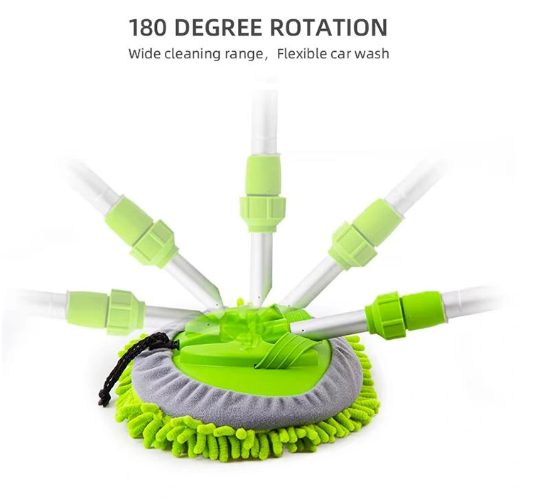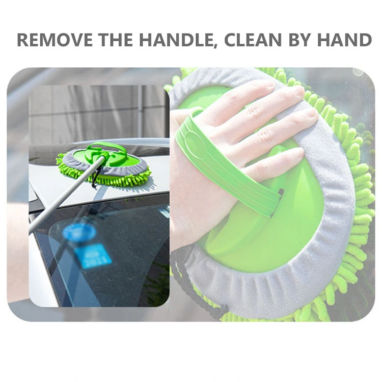 Easy to Disassemble & Replace: The cheap price Telescopic Car Washing Mop is straightforward and long-lasting. It has a removable green cleaning cover with a grey chenille edge and a built-in drawstring. The elastic strap allows it to be tightened or loosened easily, making it easy to adjust and replace.